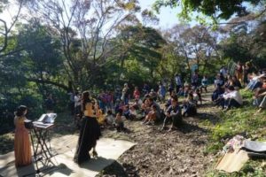畑での音楽会は逗子在住のサックス奏者深澤智美さんをお招きしました。