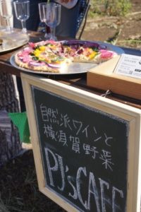 横須賀どぶ板のPJ’S CAFEの野菜ピザとビオワインも振る舞いです。