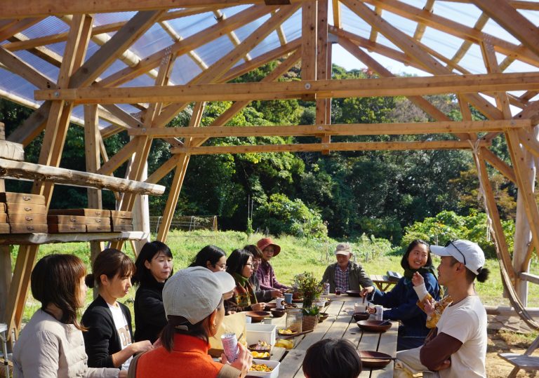 2025年4月に完成したぶどう棚は、雨よけ&遮熱屋根を活かして、雨を凌げる屋外スペースとして、作業空間、イベントスペースなど、様々な用途でお使いいただけるようになりました。